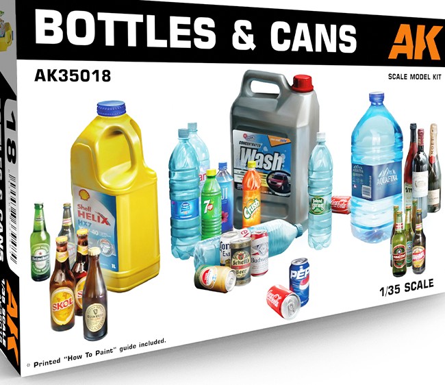 Bottles and cans are obvious ingredients in dioramas or vignettes, but their addition may also spice up models not presented on any kind of base.