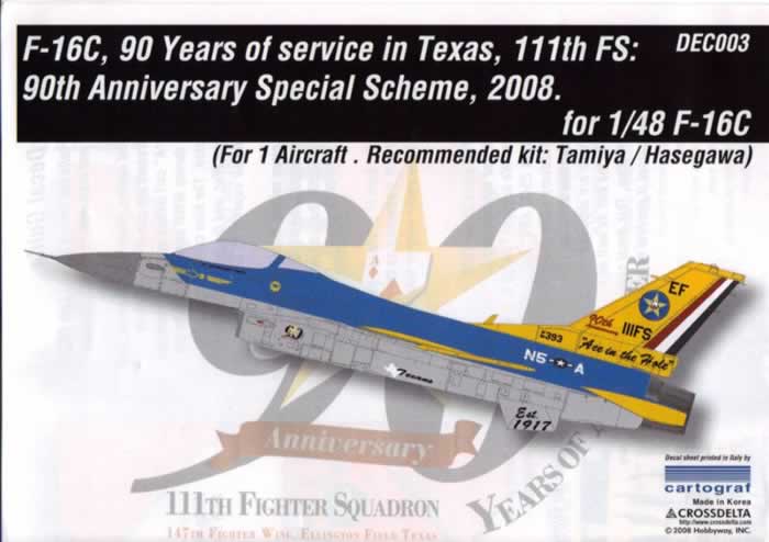 1/48 Scale – CrossDelta Decals – Lockheed Martin F-16C Falcon – 90 Years of Service in Texas
