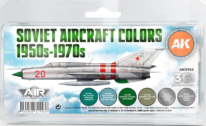 This set is specially developed for painting models of Soviet aircraft used from the 1950s to the late 1970s.