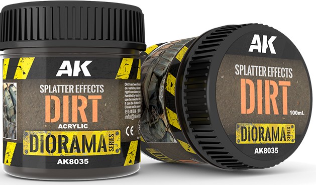 Splatter Effects Dirt has been formulated to create splatter effects and textures on vehicles, dioramas and vignettes.